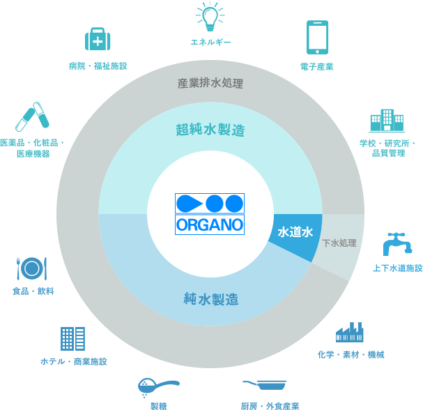 総合水処理エンジニアリングとして、 あらゆる分野の水の価値を高め、人・社会・環境に貢献します。 電子産業 対象製品を見る 化学・素材・機械 対象製品を見る 食品・飲料 対象製品を見る 糖業界 対象製品を見る 医薬品・化粧品・医療機器 対象製品を見る 学校・研究所・品質管理 対象製品を見る 病院・福祉施設 対象製品を見る 厨房・外食産業 対象製品を見る ホテル・商業施設 対象製品を見る エネルギー 対象製品を見る 上下水道施設 対象製品を見る